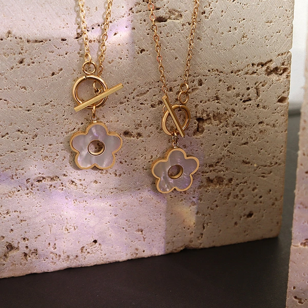 The flower necklace is made of 316L stainless steel material with 18K gold plated. All the products are nickle free and waterproof. The jewelry products in PVD plating crafts with high quality standard and anti tarnish.